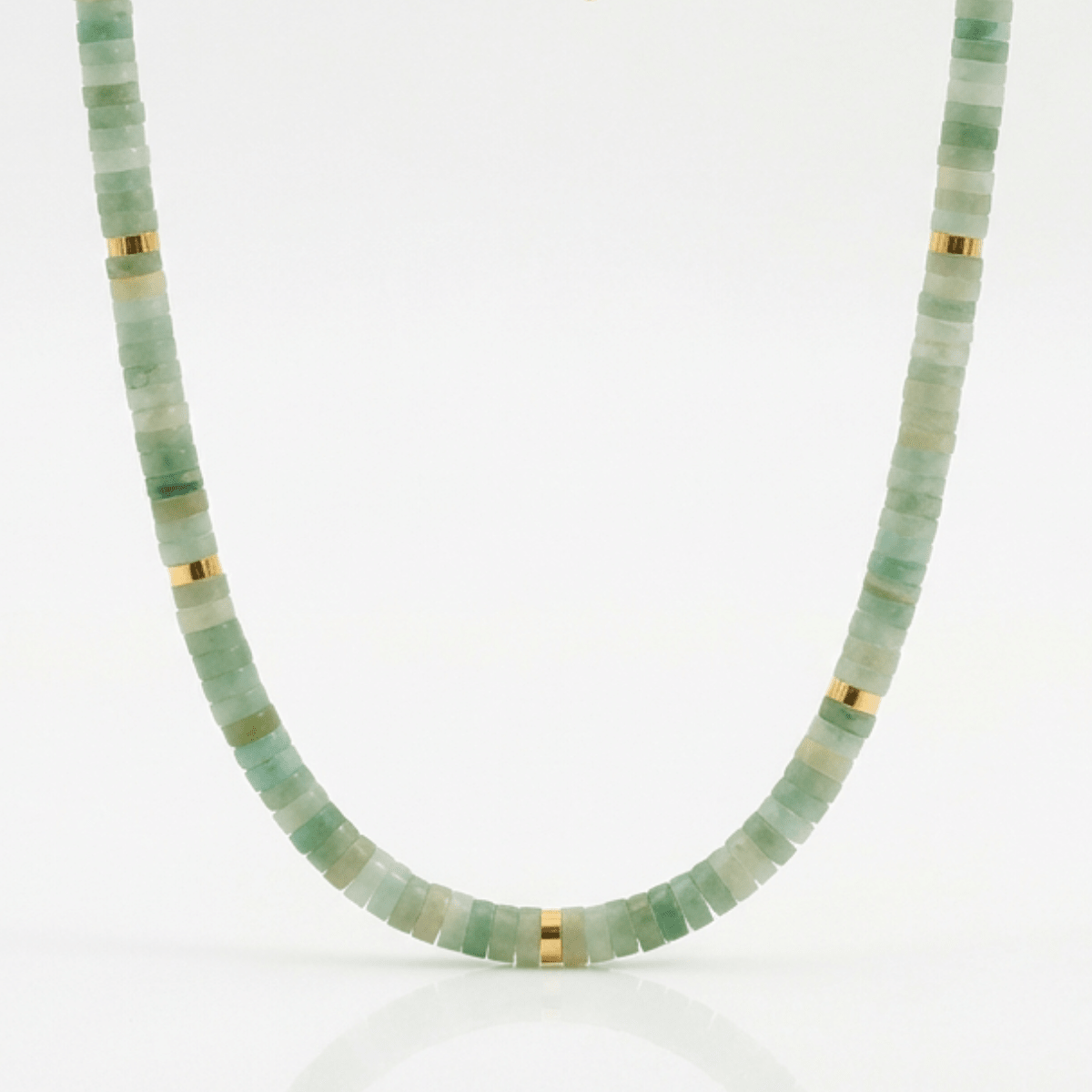 Minimal yet classic, the Eden Beaded Rope Chain Necklace features green natural stone beads. Perfect for those who love effortless elegance, this beaded necklace is crafted with stainless steel with 18k gold plating, ensuring strength, comfort, and a luxurious finish.