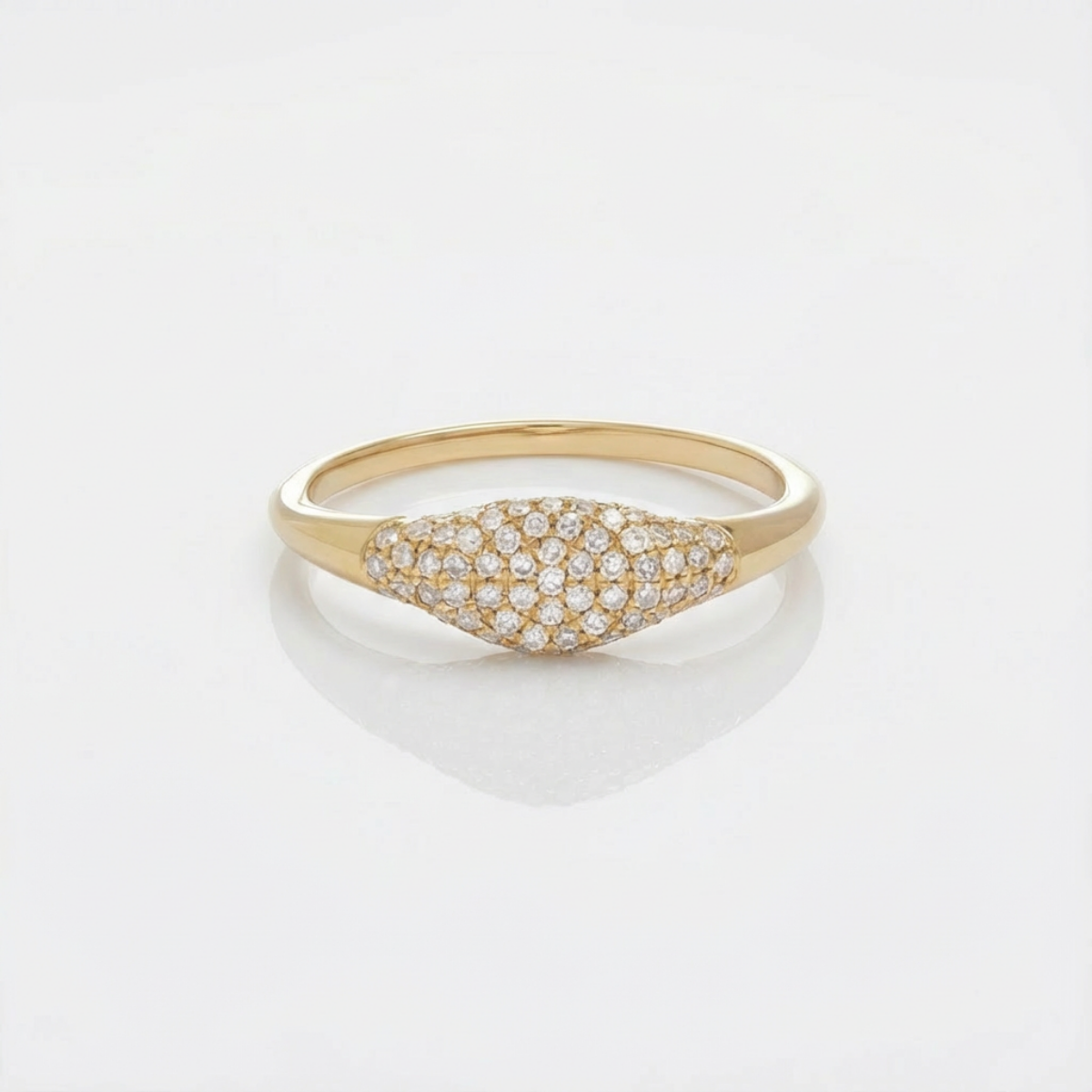 This signet design ring is paved encrusted with white Cubic Zirconia stone, the signet ring is a dainty touch of elegance and sophistication. With its 925 Sterling Silver and 18k gold plated finish means you can wear this beauty every day and it’ll look just as beautiful after each and every wear.