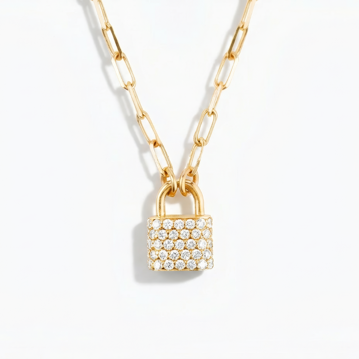 The pave Padlock necklace is a beautifully engraved necklace. It features a gorgeous encrusted padlock of diamanté pave set in 925 Sterling Silver with 18 karat gold plating. This gold-plated necklace is delicate in size and can be worn daily or for special occasions. Our padlock paves necklace is the perfect jewellery gift, for your family friends, and loved ones.